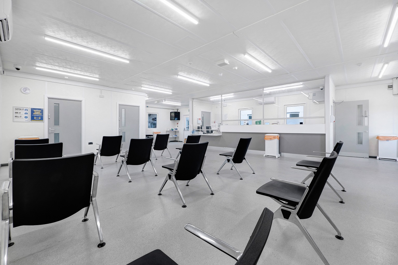 Much needed waiting area for Barnet Hospital A&E this project consisted of new lighting, power and sub main cabling to the new modular building.